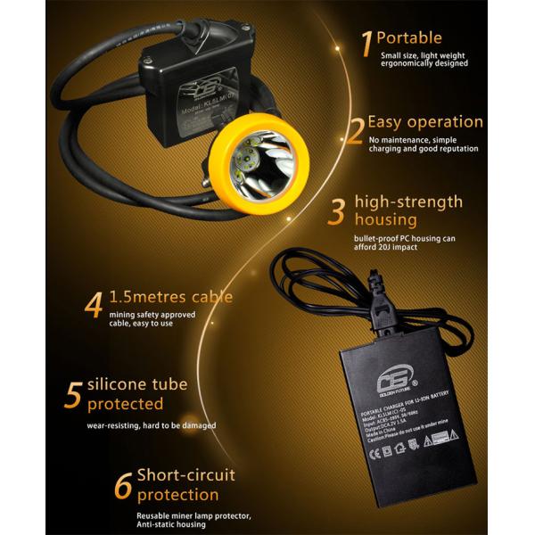Super Bright 15000Lux Led Underground Coal Mining Cap Lights Rechargeable Miner's Lamp is the brightest miner's lamp with 15000lux output. It has low power indication to remind the user to recharge it when the power is not enough. It adopts 7800mAh rechargeable li-ion battery and advanced LED technology with bulletproof PC housing and Toughened glass lens, and also MCU control charging system charger, charging time is only 6 hours.